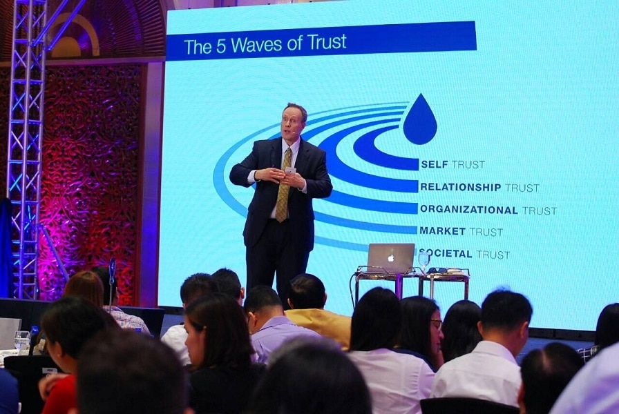 Covey, a Harvard MBA holder, best-selling author, and CEO of the Covey Leadership Center urged Filipino and Philippine-based business executives, government leaders, corporate leaders, and Human Resources professionals to learn the “economies of trust” in order to achieve success in different aspects of business.