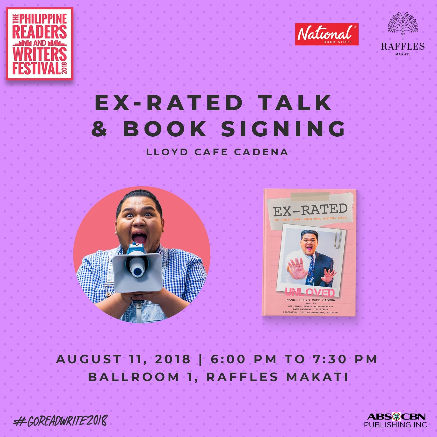 ABS-CBN Publishing, Inc. takes part in the National Book Store-led Philippine Readers and Writers Festival (PRFW) 2018, with a series of exciting talks and book signings by Kapamilya authors this weekend (August 10 and 11) at Raffles Makati.