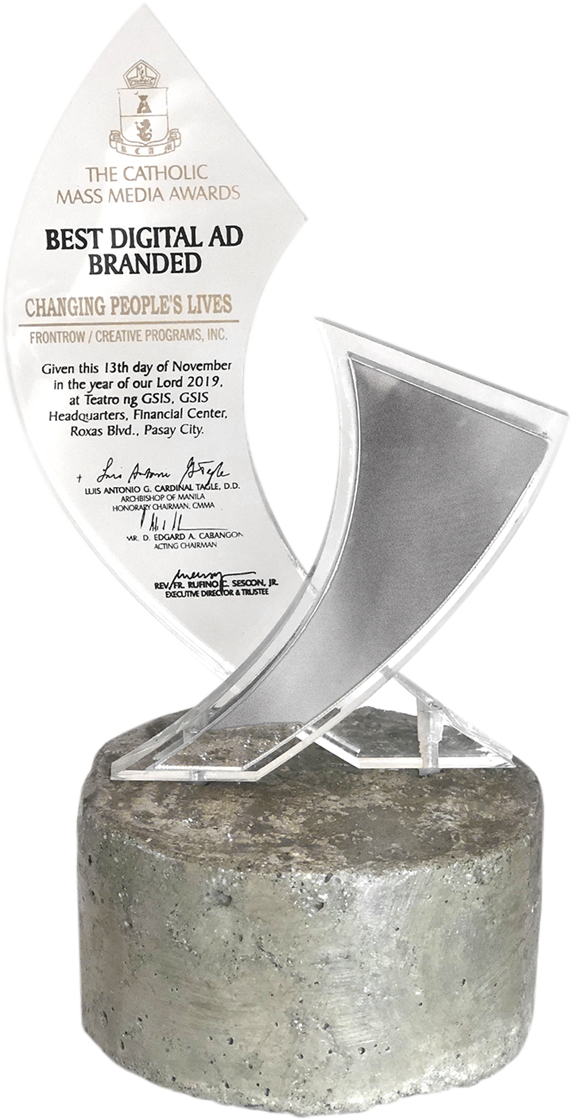 Creative Programs Inc.’s (CPI) branded marketing unit Ide8 bagged the Best Branded Digital Ad recognition at the 41st Catholic Mass Media Awards for its “Changing People’s Lives” campaign, a five-part video series about OFWs produced for Frontrow.