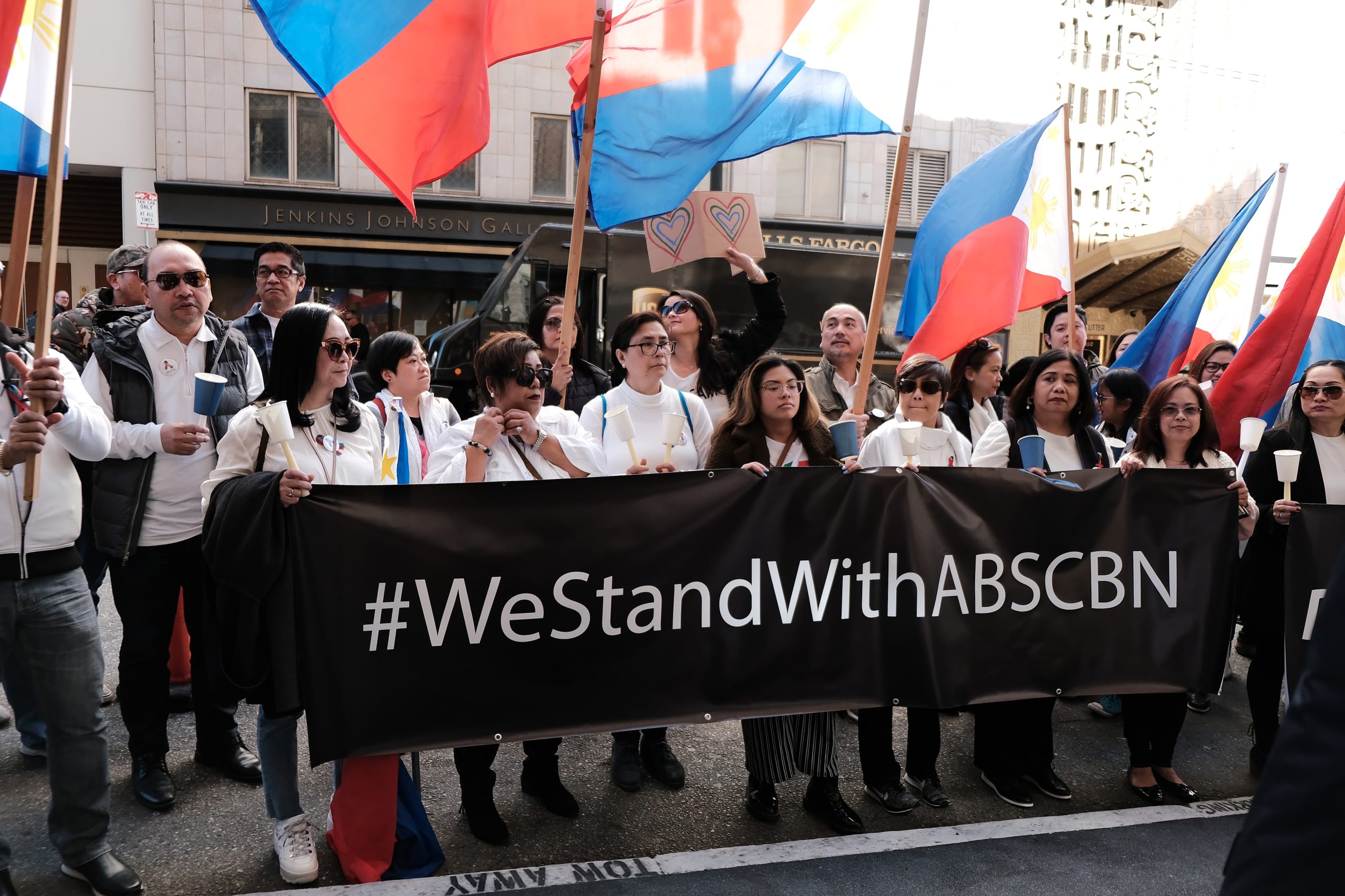 Clad in white, red, blue and green, they condemned threats to shutdown ABS-CBN — the largest Philippine media network.