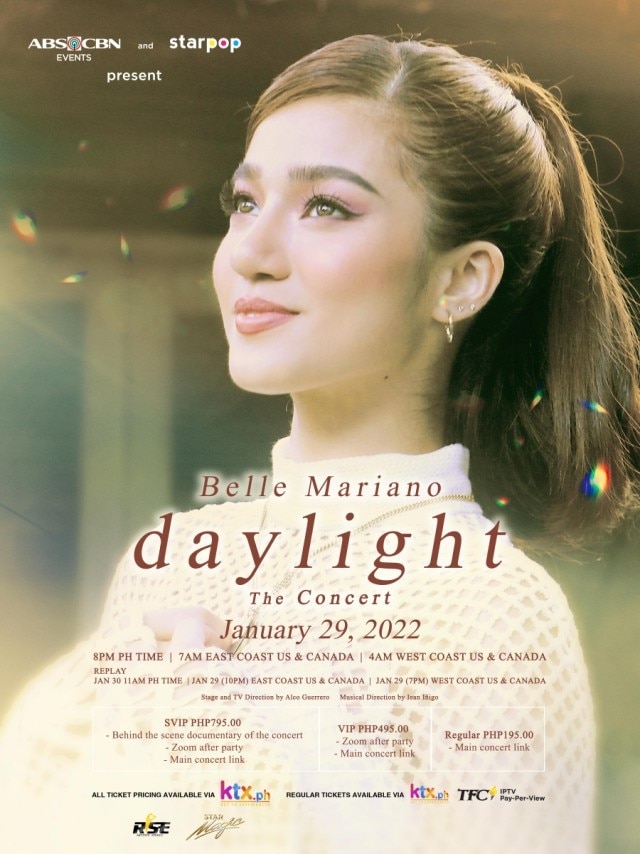 Dapat ding abangan ang kauna-unahang virtual concert ng Kapamilya star sa Enero 29, 2022 handog ng ABS-CBN Events at Star Pop. Mabibili na ang tickets sa “DAYLIGHT: The Concert” sa KTX.