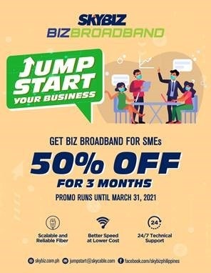 SKYBIZ continues its commitment to jumpstarting business ventures during these difficult times by providing reliable yet affordable internet services to different small and medium enterprises (SMEs) with a 50% discount offer on any BIZ Broadband plan for three months.