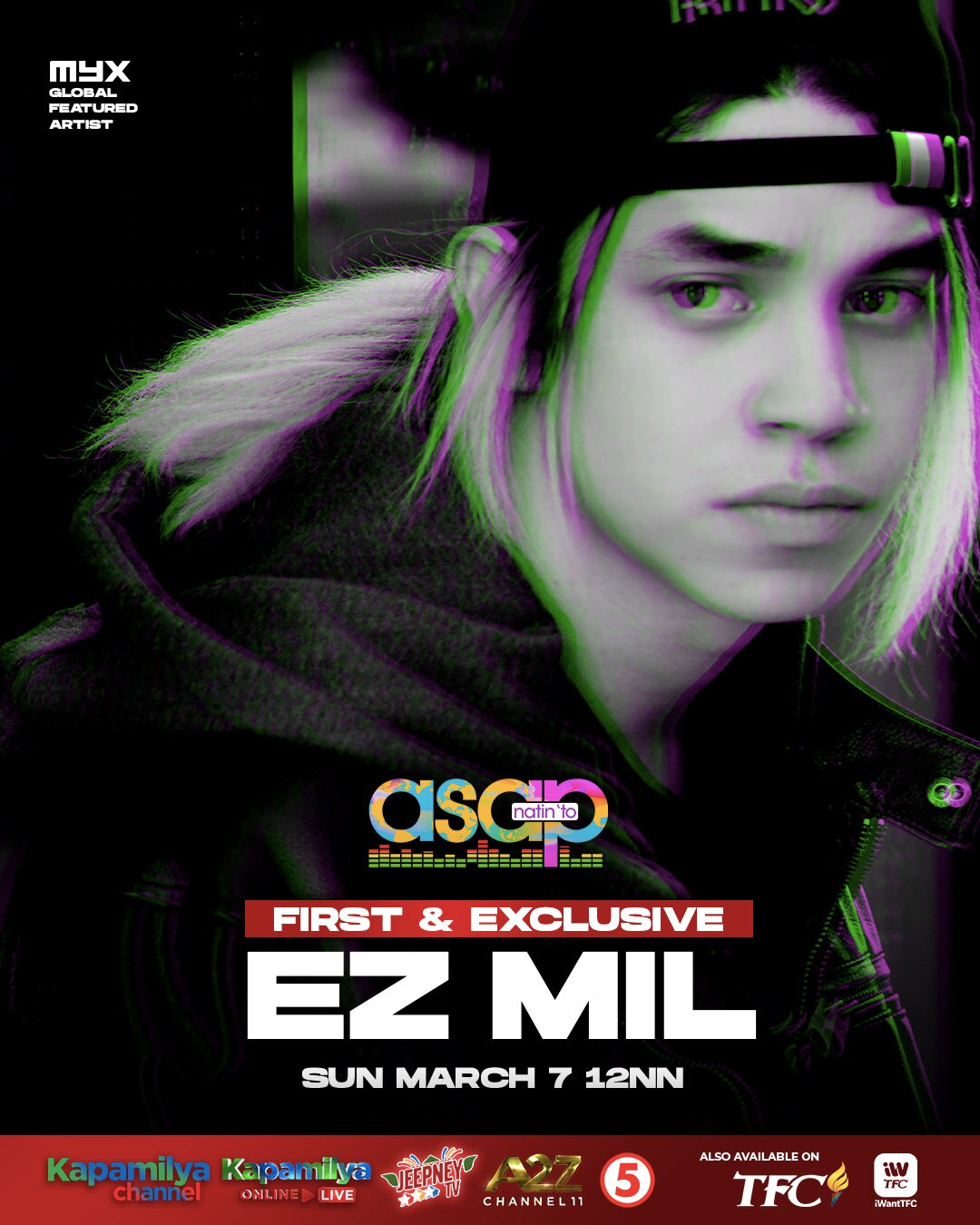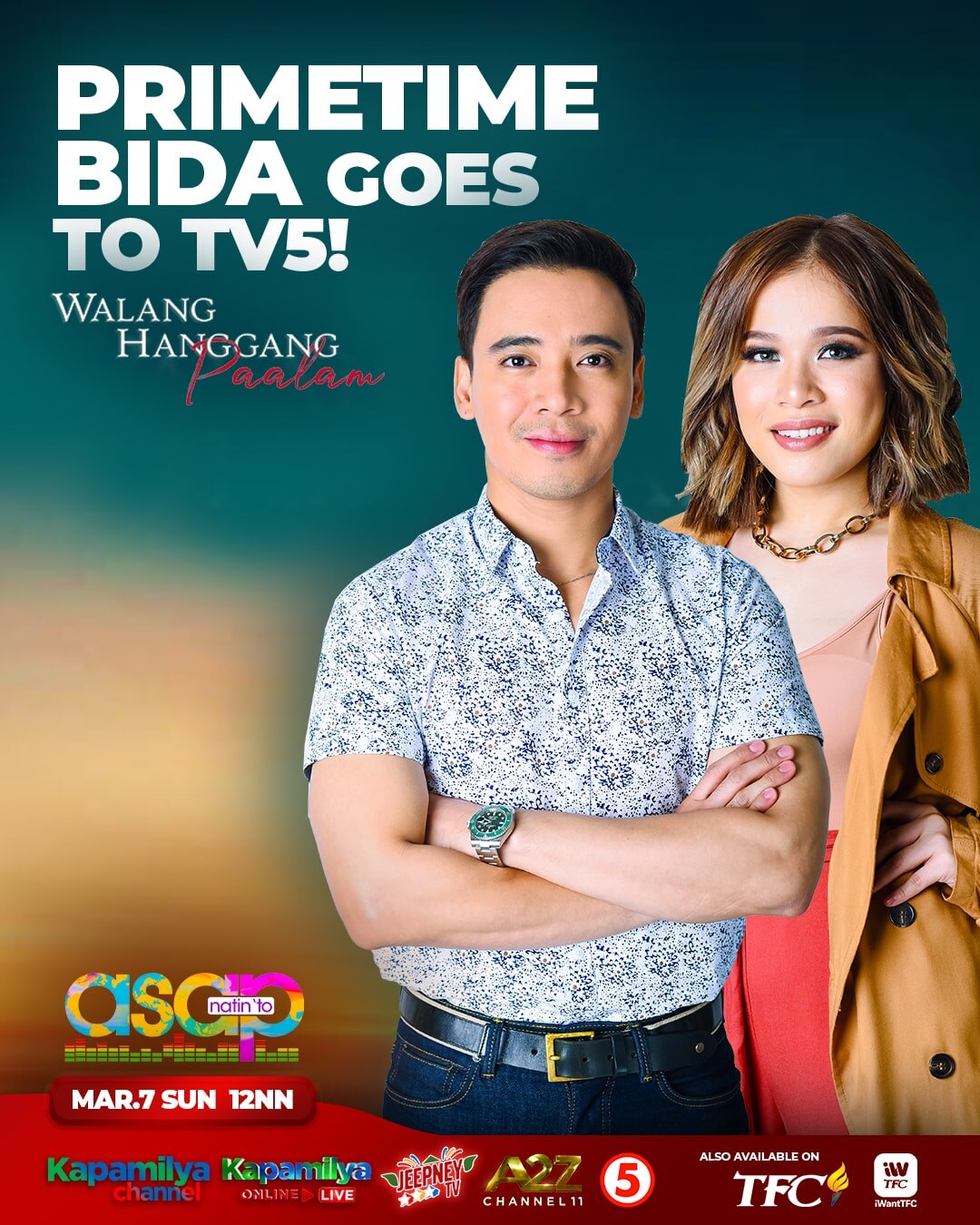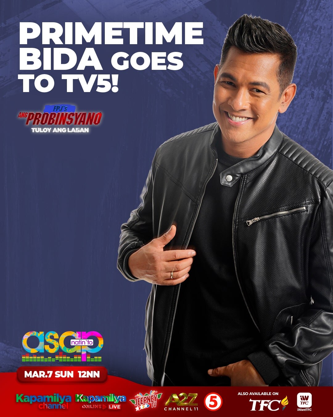 Let's unite together for a spectacular Sunday treat from the country's longest-running musical variety show, "ASAP Natin 'To," live this March 7 at 12 NN on Kapamilya Channel (SKYcable channel 8 SD and channel 167 HD, Cablelink channel 8, G Sat Direct TV channel 22, and Cignal channel 22), Kapamilya Online Live, and A2Z (both available on analog and digital TV).