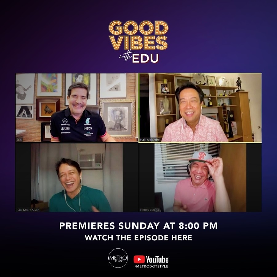 Catch the OPM hitmakers Hajji, Marco, and Nonoy on “Good Vibes With Edu” this Sunday (September 19) at 8 PM via Metro Channel on SKYcable channel 52 (SD) and channel 174 (HD), Cignal channel 69, and GSAT channel 70. Episodes will also be available to stream via iWantTFC and Metro.Style’s YouTube channel.