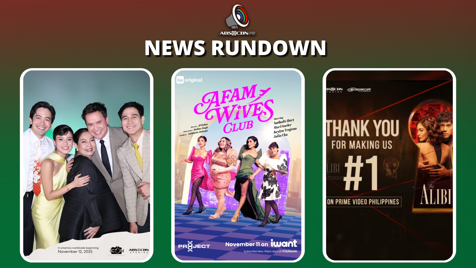 ABSCBNPRNewsRundown | STAR CINEMA’S “MEET, GREET & BYE” KICKS OFF SCREENINGS WORLDWIDE November 14, 2025 AT 09:45 PMSHARETWEET Here are this week’s top stories! For Kapamilya updates, visit https://abs-cbn.com/newsroom.